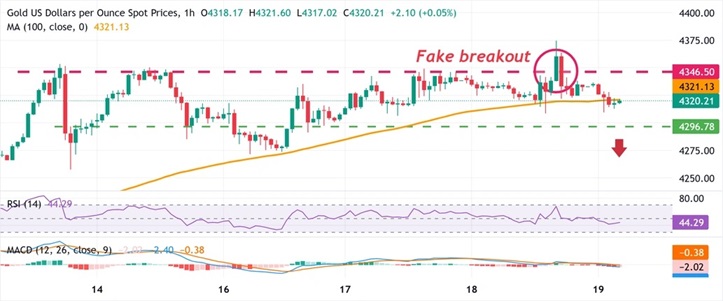 從技術面來看,Menghani指出,金價隔夜假突破4350-4355美元/盎司的阻力區域,隨後跌破100小時簡單移動平均線(SMA),這在週五對黃金空頭有利。然而,小時圖和日線圖上震盪指標的混合走勢表明,謹慎的做法是等待金價跌破4300美元后出現進一步的拋售,然後再爲金價進一步下跌佈局。