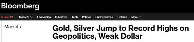 24K99訊 週五(12月26日)亞市盤中,黃金和白銀價格聯袂暴漲,並創下歷史新高,美國彭博社分析稱,在地緣政治緊張局勢升級以及美元走弱的推動下,貴金屬這一輪歷史性漲勢得以進一步延續。