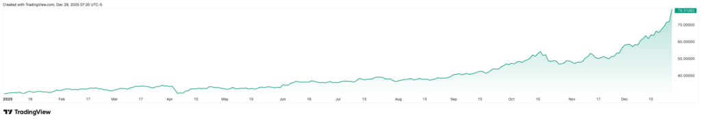 值得注意的是,2025年兩種貴金屬均強勢上漲。一些市場參與者警告稱,這種表現可能在釋放經濟壓力上升的信號,因爲投資者正越來越多地轉向避險資產。