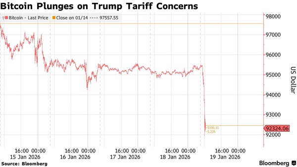 #NFT與加密貨幣#FX168財經報社(亞太)訊 在美國總統特朗普(Donald Trump)提出對八個歐洲國家加徵新關稅後,隨着風險資產走弱、避險需求增強,加密貨幣大幅下跌。