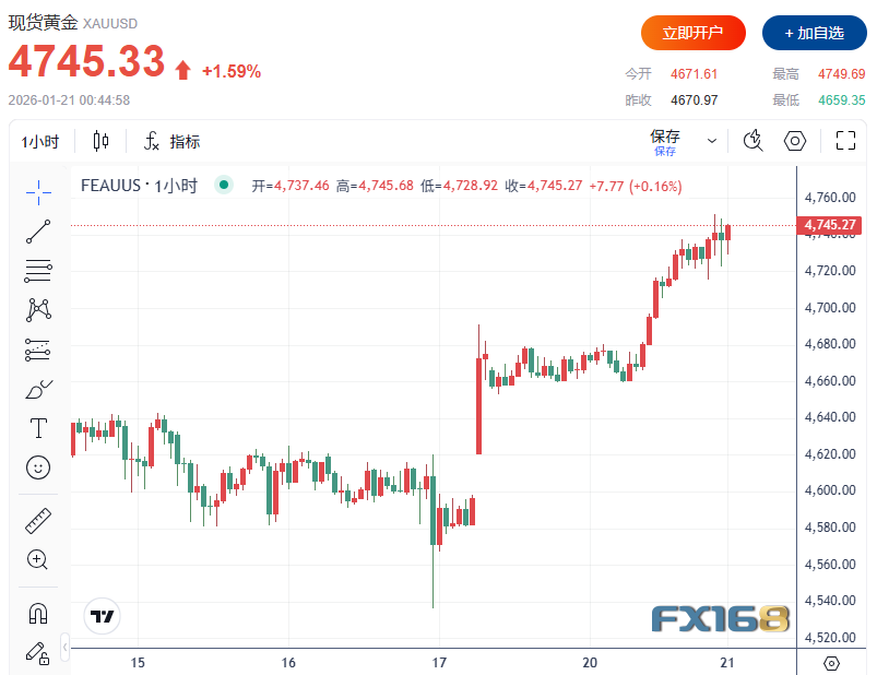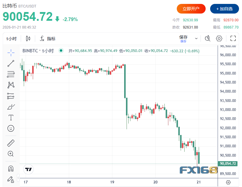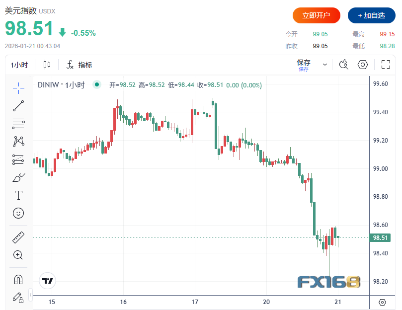 FX168財經報社(北美)訊 在特朗普圍繞「控制格陵蘭」持續升級對歐洲盟友的關稅威脅後,市場避險情緒在長週末後集中釋放:美元走弱、美債收益率上衝,比特幣顯著回撤;黃金、白銀則強勢拉昇並刷新歷史高位,「賣出美國」交易再度升溫。