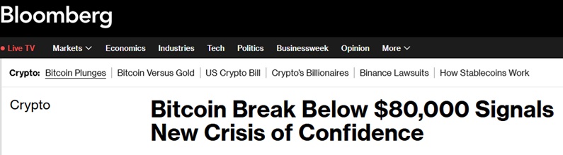 價格、相關性、信念——比特幣正在三方面同時失血。比特幣價格已經跌破關鍵支撐8萬美元,這預示着新的信心危機。