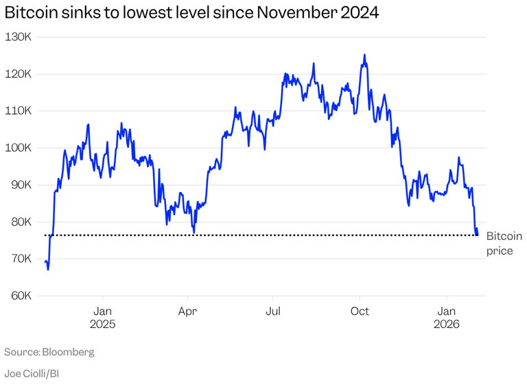 週三,比特幣繼續深度回調,盤中最低觸及72096.20美元,日內一度下跌超過5%;截至美股午後,比特幣最新報72958.38美元附近,跌幅約4%。與去年10月觸及的約126000美元歷史高點相比,比特幣目前累計回撤已超過40%。