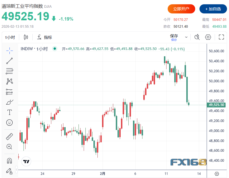 FX168財經報社(北美)訊 週四(2月12日),美國股市在軟件與科技板塊新一輪拋售中全面走低。市場對人工智能(AI)鉅額資本支出的回報能力產生質疑,同時最新勞動力數據繼續顯示就業市場穩健,令投資者下調對美聯儲近期降息的押注,風險偏好整體降溫。