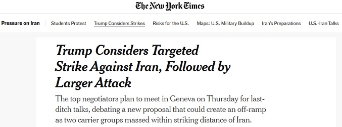 美國和伊朗談判代表定於週四在日內瓦會晤,這似乎是避免軍事衝突的最後談判。特朗普一直在權衡談判失敗情況下美國的多種選項。