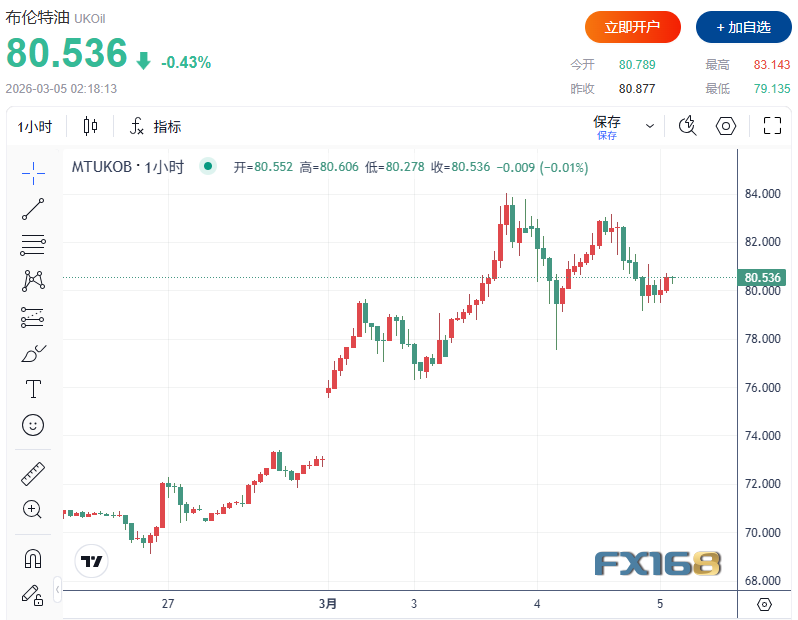 油價週三下跌,爲美國對伊朗開戰以來首次回落。此前兩日油價大漲,美油週一上漲6%、週二再漲5%,本週高點一度逼近78美元/桶。市場波動的核心在於:伊朗的導彈與無人機反擊範圍擴大,並波及能源基礎設施的擔憂,使得供應中斷風險被迅速計價。