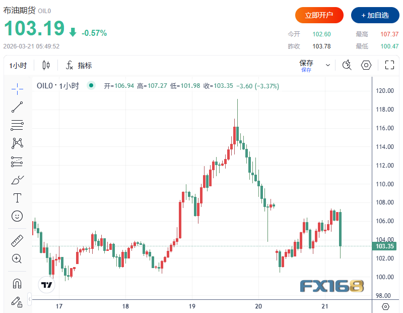 FX168財經報社(北美)訊 隨着美以對伊戰爭持續升級,伊朗方面如今已不願就重開霍爾木茲海峽進行實質性討論,而是將重心轉向政權生存與戰爭應對。這一信號意味着,承擔全球約五分之一石油和液化天然氣運輸的關鍵能源通道,短期內恐仍難恢復暢通。與此同時,美國總統特朗普週五(3月20日)表示,他無意推動與伊朗停火,並稱美國若繼續對伊軍事行動更長時間,伊朗將「永遠無法重建」軍事能力。這番表態疊加美國再度增兵中東消息,顯示本輪衝突短期內恐難收場,也令全球市場對油價高企、通脹反彈與資產波動加劇的擔憂持續升溫。受此影響,國際油價再度大幅走高,全球金融市場週五則遭遇全面衝擊:黃金跌破4500美元關口,美債收益率顯著飆升,股市、貴金屬和加密資產普遍承壓,原油成爲少數逆勢上漲的資產之一。