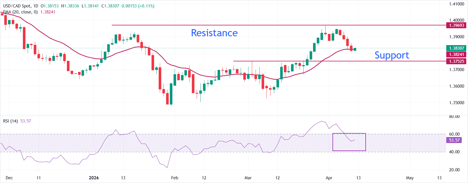 美元/加元週五從兩週低點1.3805反彈至1.3833附近,結束了連續四天的跌勢。隨著美國(USD)在週末巴基斯坦舉行的美伊10點和平提案談判前走高,加元對美元匯率上漲。