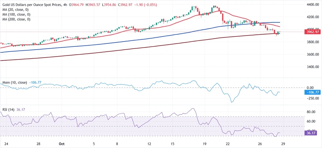#黃金技術分析#24K99訊 週三(10月29日)亞市盤中,現貨黃金價格在昨日下跌後溫和反彈,目前金價位於3966美元/盎司附近。本交易日,美聯儲利率決議勢必引發市場大行情。FXStreet首席分析師Valeria Bednarik撰文,對黃金技術前景進行分析。