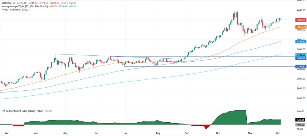 FX Empire分析師Christopher Lewis指出,當前市場的主導邏輯仍是:每一次短線回調,都吸引新一批多頭入場。4400美元/盎司仍是短線最重要的阻力位。一旦突破該水平,黃金有望開啓新一輪上行行情,漲勢或將進一步加速。