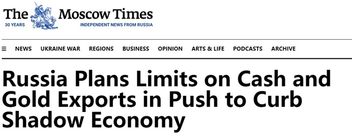 俄羅斯財政部副部長阿列克謝·莫伊謝耶夫(Alexei Moiseev)在9月抱怨稱,黃金正日益成爲非法交易中外幣的替代品,助長了資本外逃和洗錢活動。