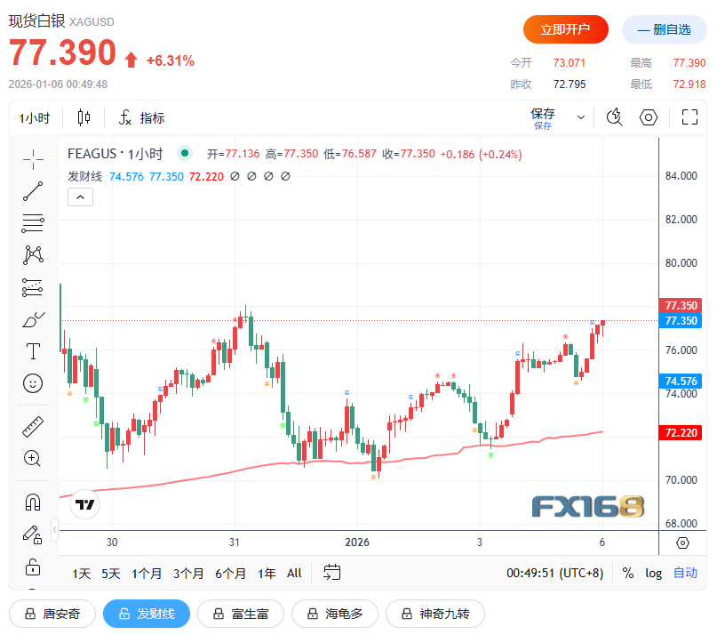 除黃金之外,其他貴金屬同樣表現驚豔:現貨白銀上漲6.3%,至77.390美元/盎司;現貨鉑金上漲7.7%,至2,307.23美元/盎司;現貨鈀金上漲超7%,至1,730.56美元/盎司。其中白銀的強勢尤其引人關注。白銀在2025年累計上漲約147%,其上漲動力來自美國將白銀列爲「關鍵礦產」帶來的政策溢價,同時市場結構性供給缺口仍在擴大,疊加工業需求增長,使其兼具「避險屬性」與「工業金屬屬性」的雙重拉動。