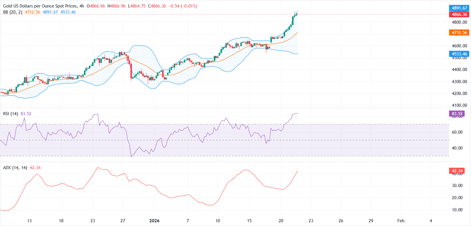 若持續突破接近4,868.15美元的上帶,可能會打開進一步上漲的空間。