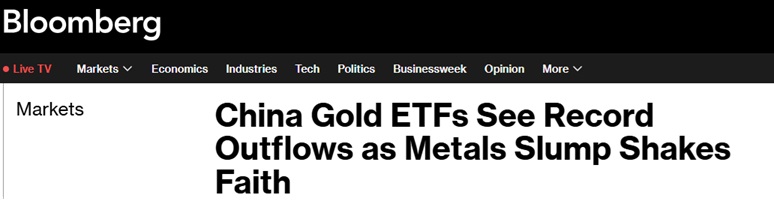 中國黃金市場「大變臉」!金屬價格暴跌動搖信心 中國黃金ETF創下歷史最大流出