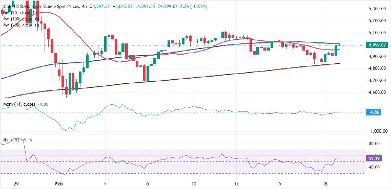 #黃金技術分析#24K99訊 週四(2月19日)亞市盤中,現貨黃金在昨日暴漲後略微回落,金價目前位於4972美元/盎司附近。FXStreet首席分析師Valeria Bednarik撰文,對黃金技術前景進行分析。