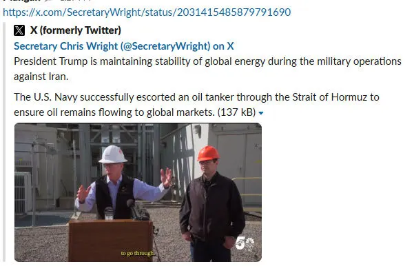 一條被刪除的帖文引發油市雪崩!美能源部長稱海軍護航成功 原油一度狂瀉17%
