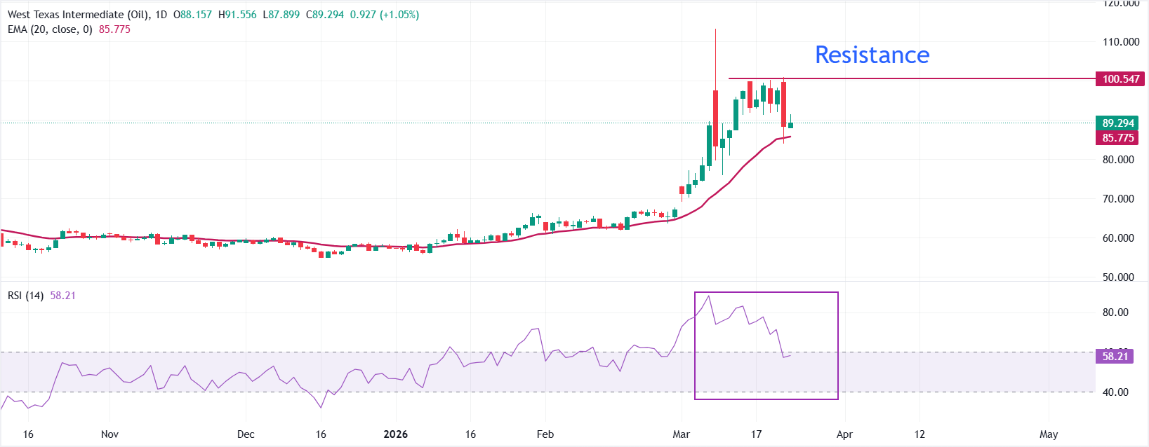 WTI 價格預測:在中東衝突中守住關鍵的 20 日均線EMA