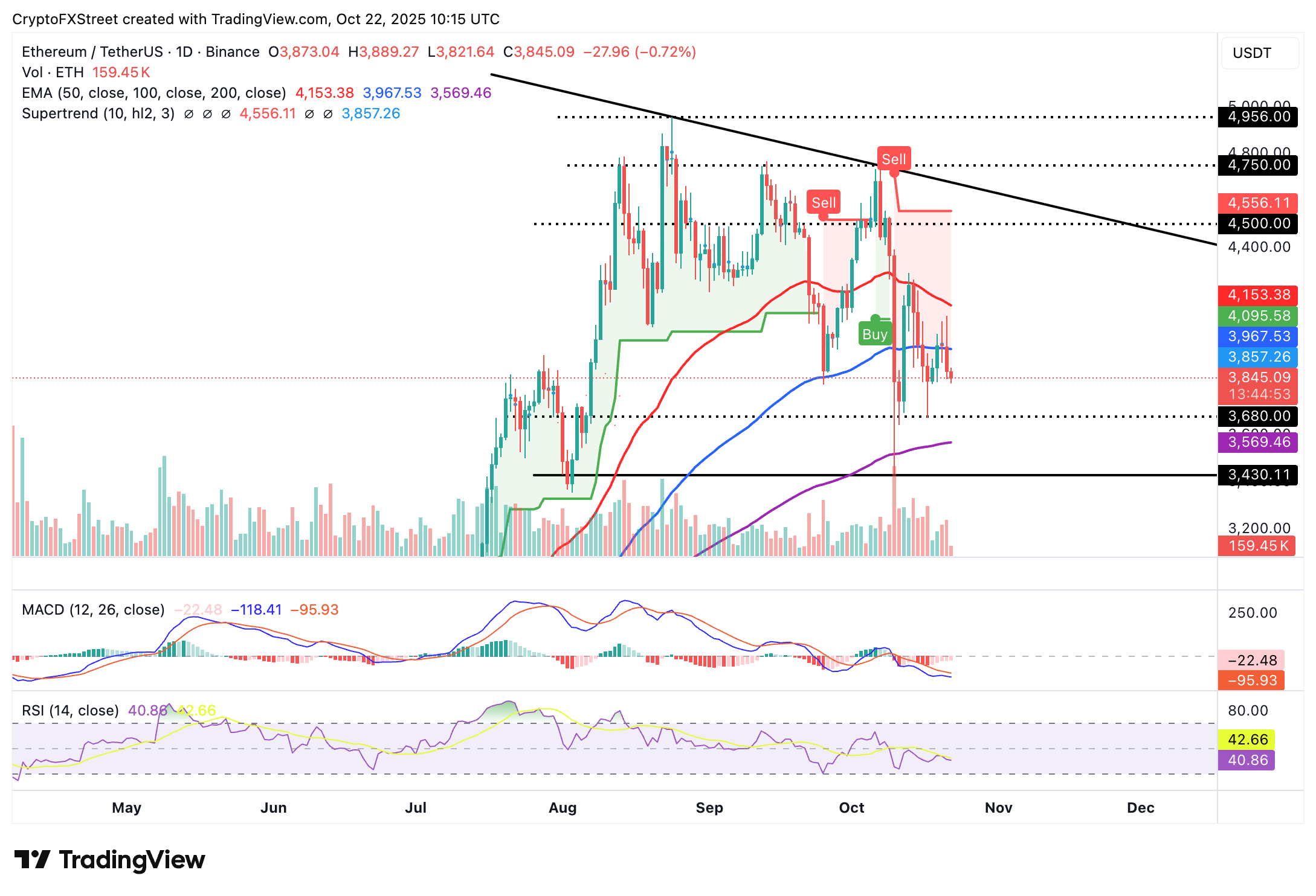 賣方似乎佔據上風,引用10月10日觸發的MACD賣出信號和低於50的相對強弱指數(RSI)顯示看跌動能在增加。