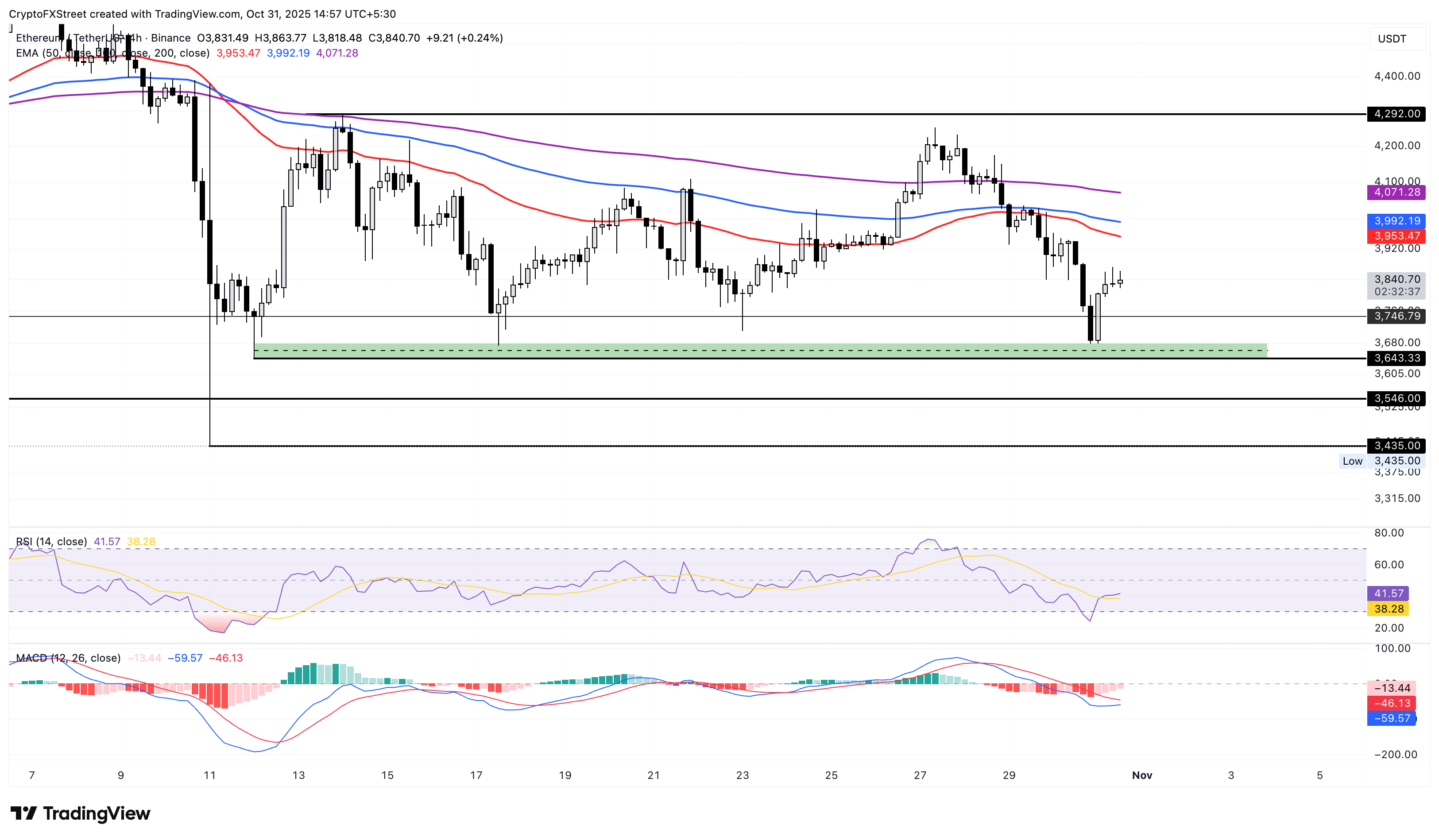 不過,賣壓的激增可能迫使ETH重新測試3,650美元區間。