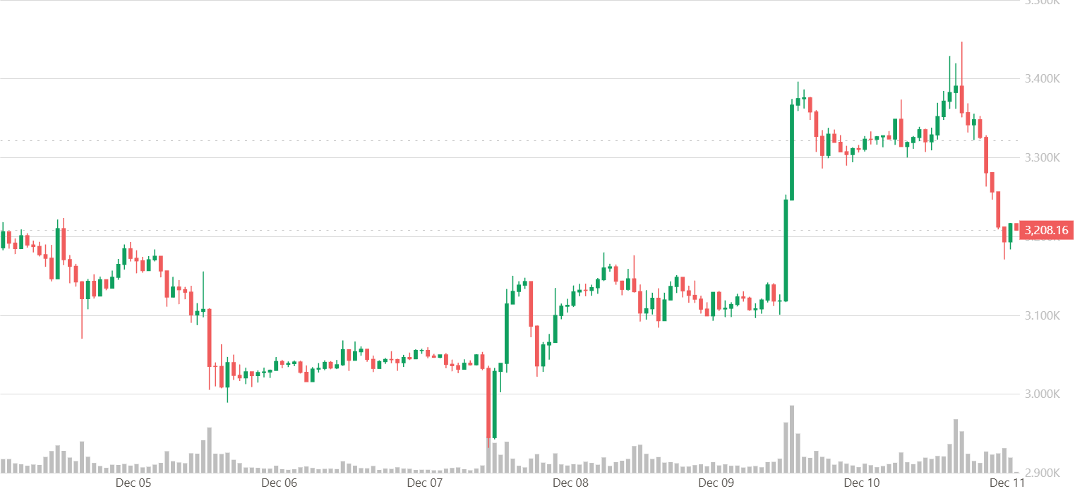 以太坊走勢同樣平靜,維持在約 3,270 美元附近,沒有明確催化劑帶動其走出近期區間。