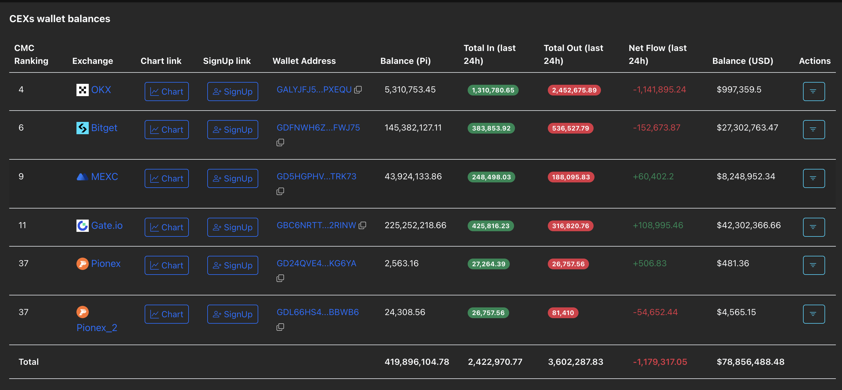 與此同時,該公告正在提升零售需求。PiScan 數據顯示,用戶在過去 24 小時內從 CEXs 移除了 117 萬個 PI 代幣,減少了他們的錢包儲備和賣壓。