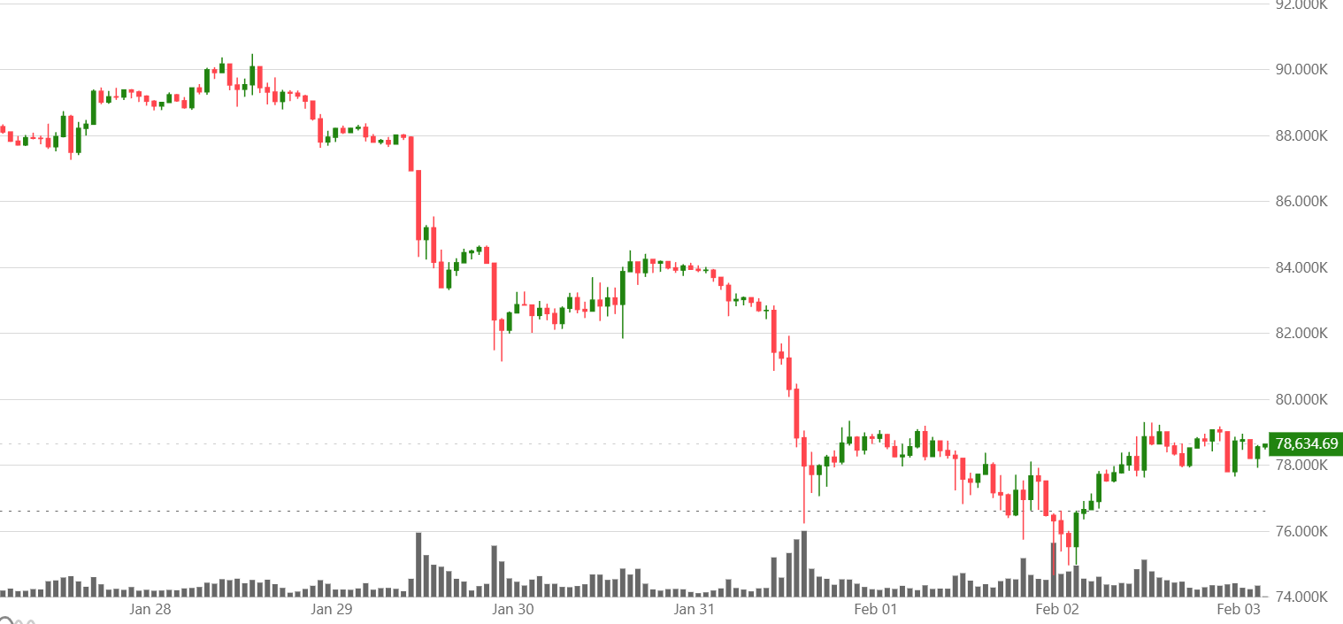按市值計算的頭號加密貨幣比特幣價格,在經歷週末下跌(估值從約85,000美元跌至75,000美元下方)後,目前已在75,000-80,000美元區間企穩。一些觀察人士把希望寄託在期貨市場的結構性因素上,認爲其可能觸發價格重返80,000美元上方的反彈。