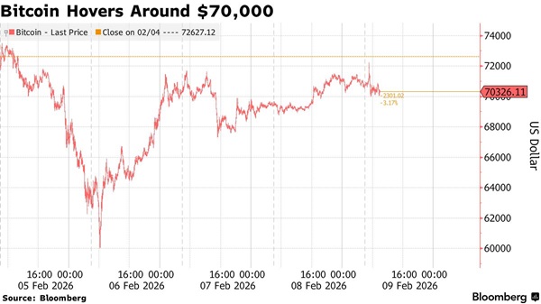 #比特日報#FX168財經報社(亞太)訊 比特幣在上週末經歷「過山車式」行情後,於週一(2月9日)亞洲時段在70,000美元上方企穩。