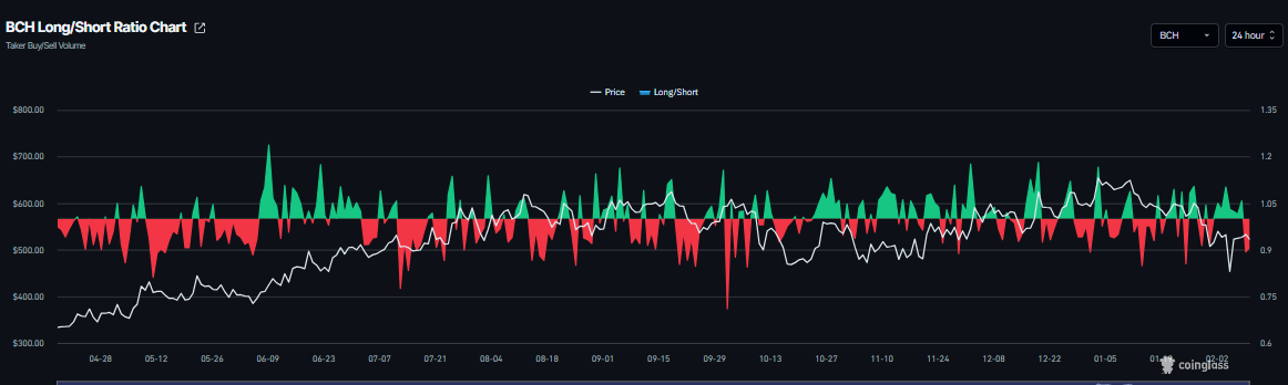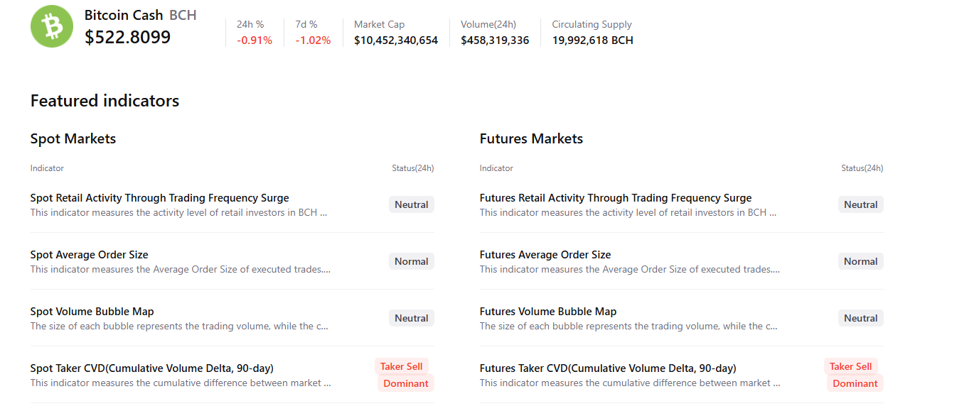 比特幣現金(BCH)在週二的交易中處於下跌狀態,價格低於522美元,此時寫作時在關鍵阻力位遭遇多次拒絕。BCH的衍生品和鏈上指標指向日益增長的看跌情緒,並提高了向下支撐位的死貓反彈風險。