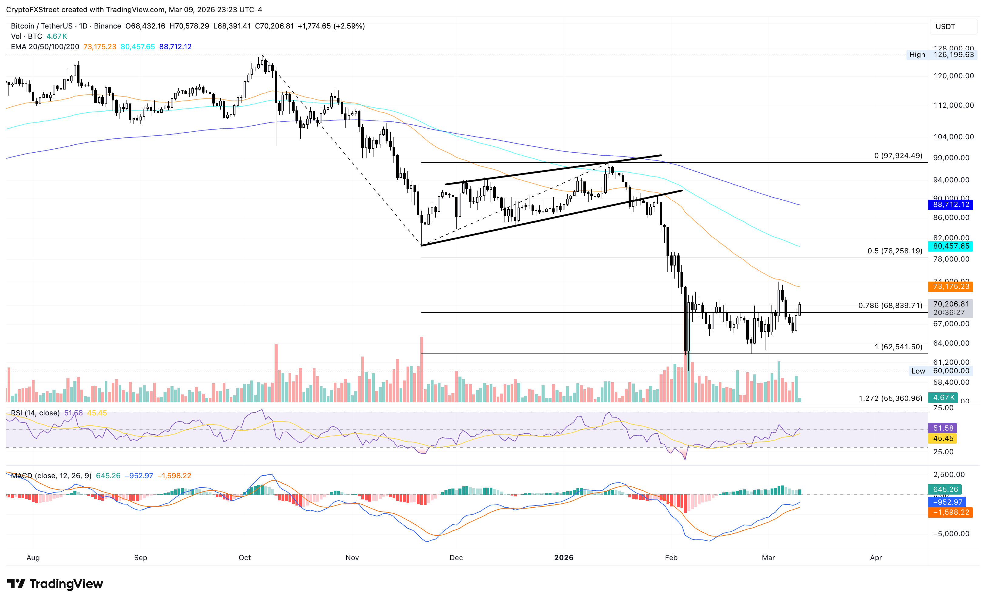若能在此水平上果斷收盤,可能為比特幣進一步恢復至73,136美元的50日指數移動平均線(EMA)鋪平道路。