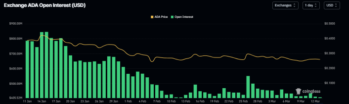 卡爾達諾的衍生品數據也顯示出混合信號。週四,卡爾達諾期貨未平倉合約(OI)降至4.1億美元,自1月中旬以來穩步下降,接近2月12日的4.07億美元水平。OI的下降反映了投資者參與度的減弱,並預測了看跌的前景。