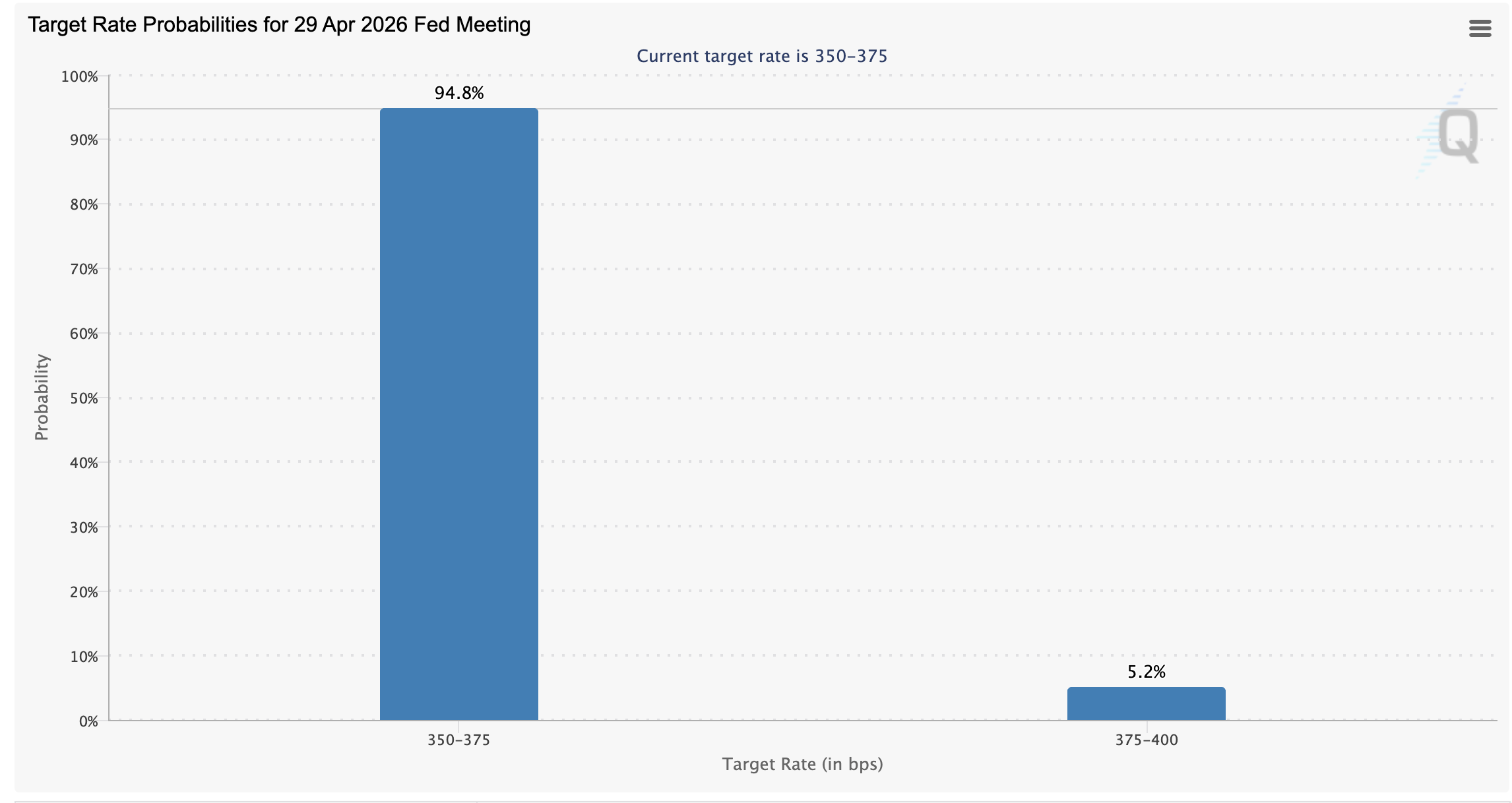 美聯儲維持利率在3.50%-3.75%區間不變,符合市場普遍預期,投資者預計4月29日美聯儲下一次會議後利率也將保持不變。