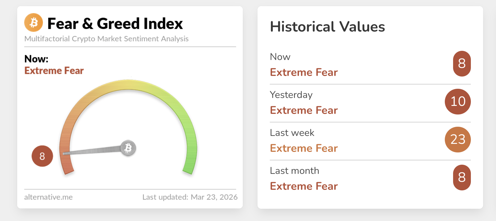 與此同時,加密資產的興趣依然低迷,正如恐懼與貪婪指數所示,該指數週一降至8(極度恐懼),較前一日的10和上週的23有所下降。