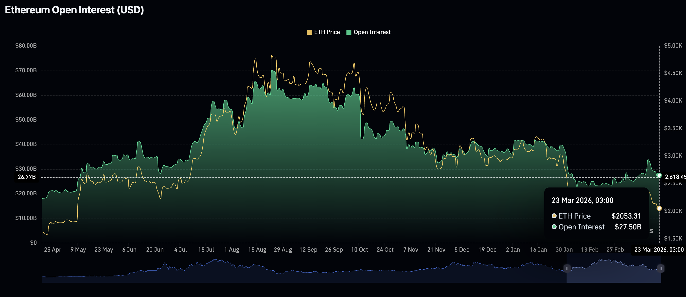 較高的未平倉合約與較高的流動性和新資本流入市場有關。這被認為相當於提高了效率,而且目前的趨勢仍在繼續。當未平倉合約減少時,被認為是市場平倉的跡象,投資者正在撤離,對某項資產的總體需求在下降,助長了投資者的看跌情緒。
