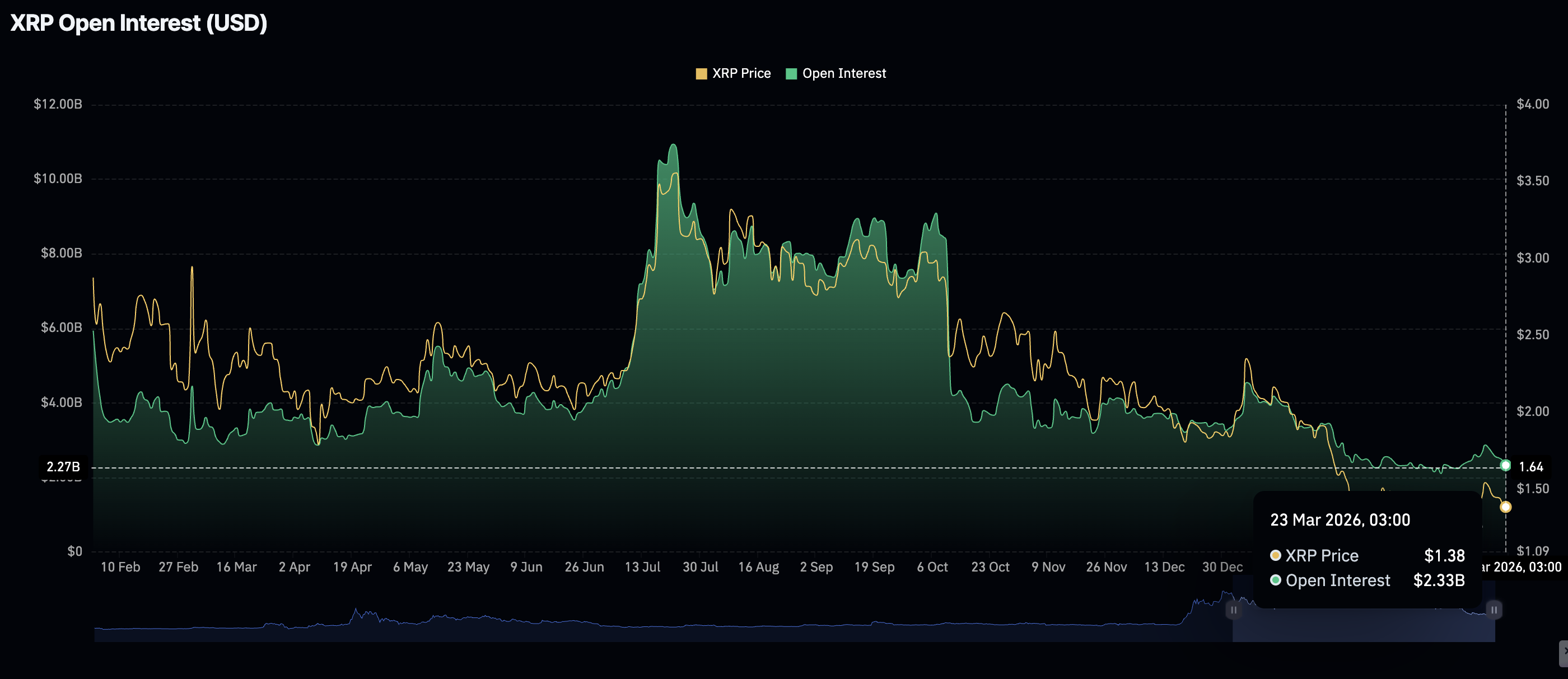 瑞波幣的零售興趣也有所減弱,期貨未平倉合約週一急劇下降至23.3億美元,低於前一日的24.7億美元和上週的28.7億美元高點。自7月未平倉合約創下109.4億美元歷史高點以來,瑞波幣衍生品市場持續疲軟。