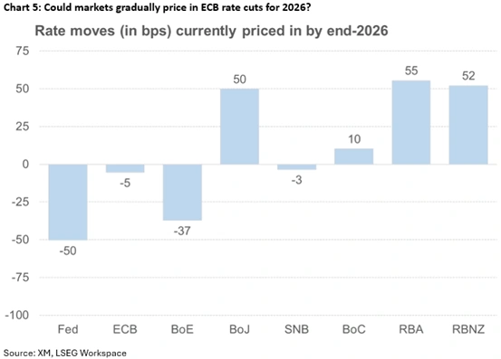 一系列強勁的美國數據,若能印證目前勞動力市場企穩的跡象,同時通脹壓力再次小幅回落,可能為美元提供重要的喘息之機。然而,美聯儲官員的鷹派言論對於這種走勢的持續性至關重要。儘管美聯儲會議基調樂觀,且米拉恩(Miran)此次投票支持降息25個基點,但就現階段而言,美聯儲官員發表鷹派言論並非基準情景。