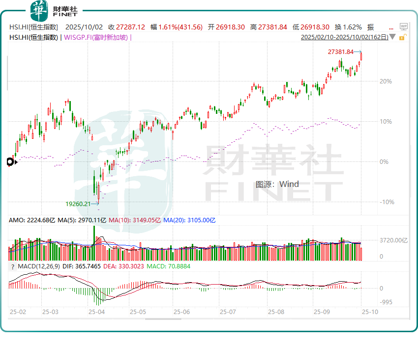 今年以來,香港恒生指數累計漲幅達36%,同期富時新加坡指數累計漲幅僅有約14%。此外,港股IPO融資規模在全球領先,根據Wind統計,2025年前9個月,港股IPO(包括創業板)募資總額達約1823.97億港元(約234.37億美元),同比大幅增長227.15%。