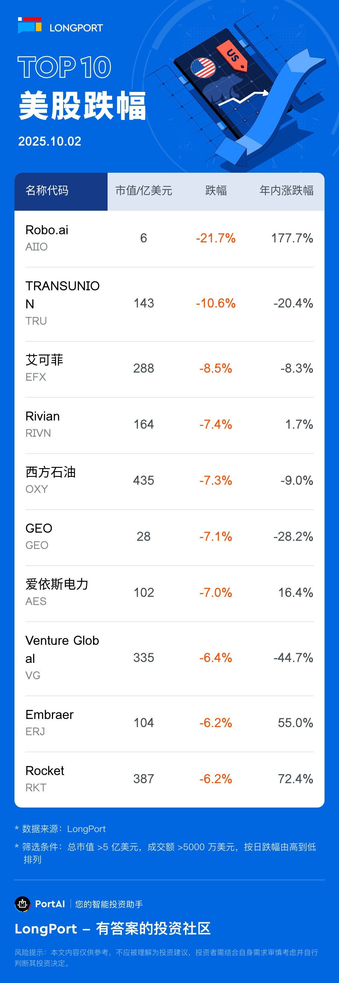 TRANSUNION(TRU) 跌 10.64%,成交額 12.0 億美元,年內累計跌 20.4%。