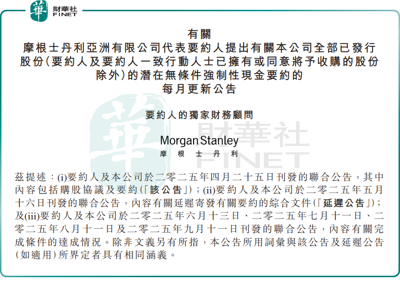 10月10日,耀才證券公告,於2025年9月23日,根據《證券及期貨條例》第132(1)條,獲證監會批準,要約人已成為耀才期貨及商品有限公司、耀才證券國際(香港)有限公司、耀才資產管理有限公司及耀才環球外匯有限公司的主要股東。該批準有效期為六個月,具體落實須在此期間内完成,或者獲得香港證監會書面同意延長有效期。