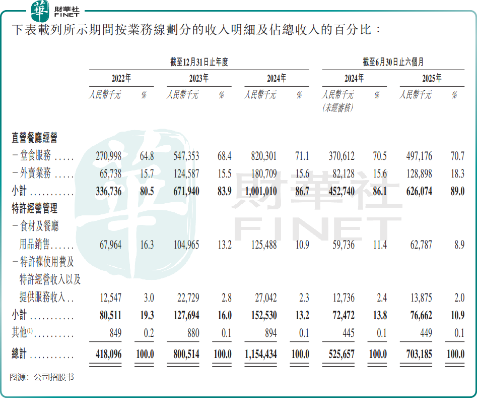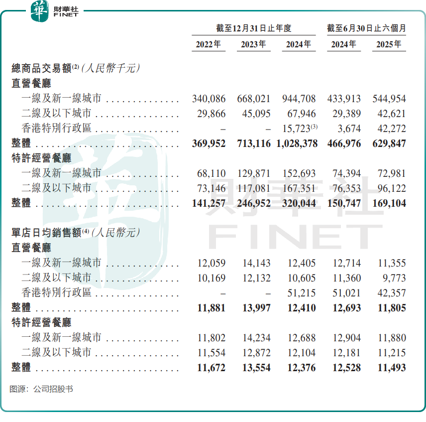 在2025年上半年,遇見小面的直營餐廳和特許經營餐廳的翻座率均出現下降,分别降至3.4次/天和3.1次/天。公司解釋稱,主要由於2025年上半年外賣平台上的推廣活動持續加強,使若幹顧客從堂食改為在外賣平台上下單。