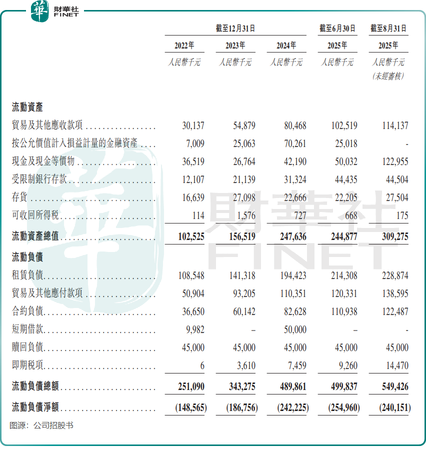 然而,在業績向好的表象之下,遇見小面財務結構卻暗藏風險。截至2025年8月31日,其流動資產為3.09億元,流動負債高達5.49億元,流動比率僅為0.56。同時,根據Wind數據,公司資產負債率2022年以來一直處於高位,2025年上半年為87.83%,顯示其短期償債壓力巨大。