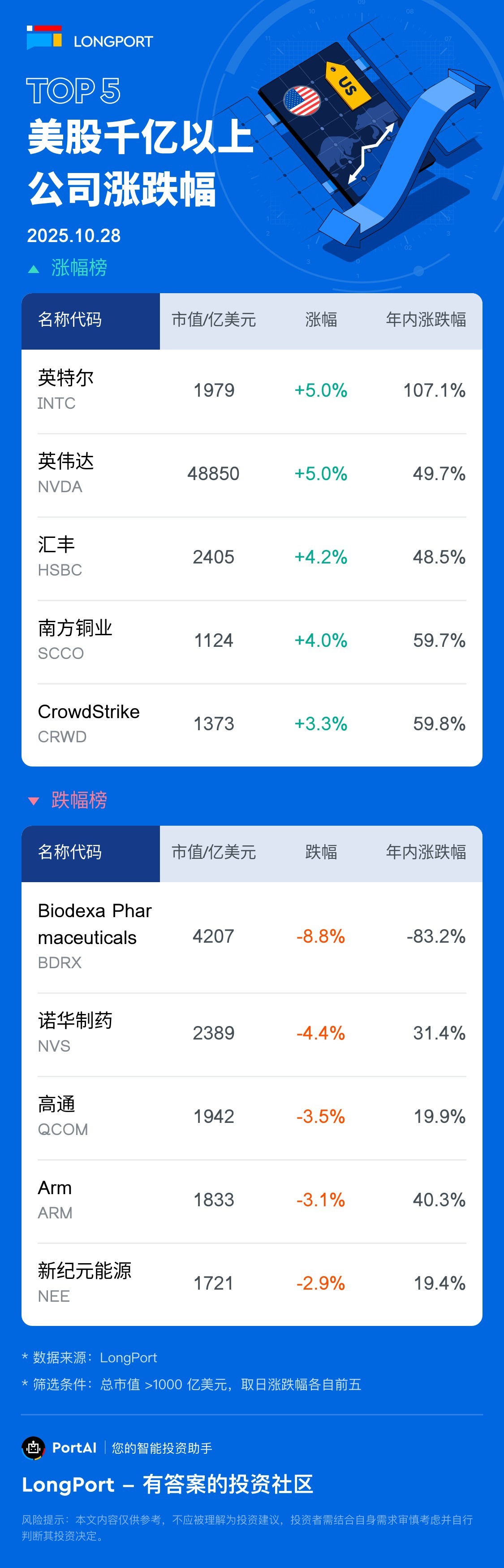 英特爾 (INTC) 漲 5.03%,成交額 74.9 億美元,年內累計漲 107.1%。