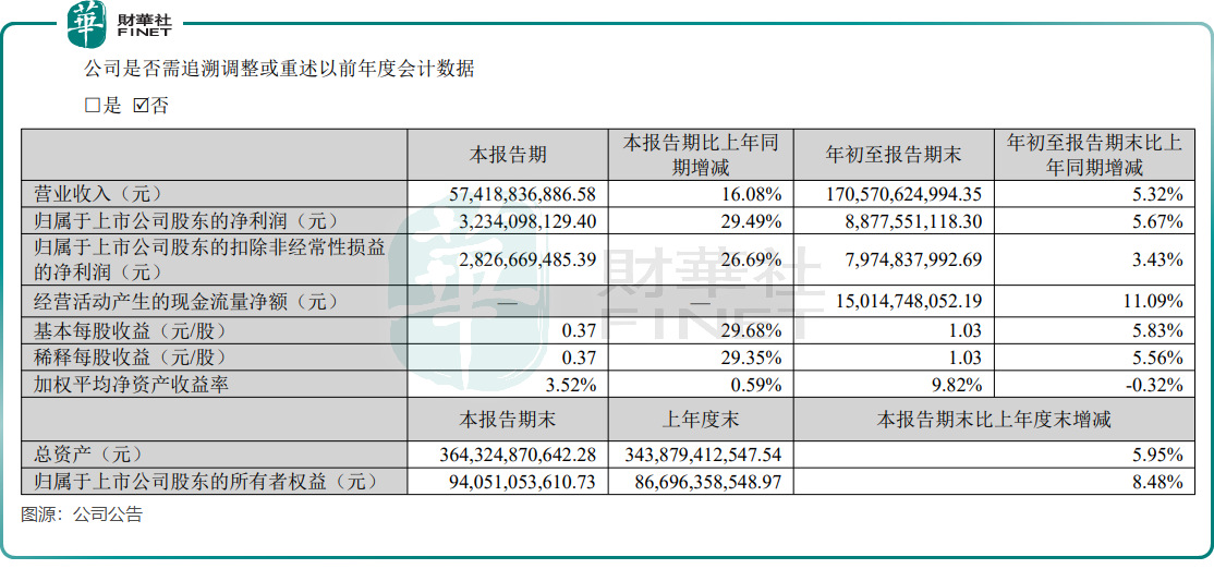 今年第三季度,公司業績強勢反彈,營收同比增長16.08%至574.19億元(單位人民幣,下同),淨利潤同比增長29.49%至32.34億元,超出多家投行預期。