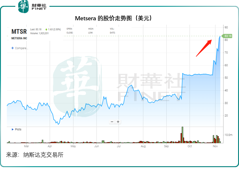 受此消息帶動,Metsera的股價於11月7日狂飙至83.18美元的紀錄高位,市值達到87億美元,而我們留意到其盤後股價進一步躍升7.00%,現報89.00美元,已超出輝瑞的出價。