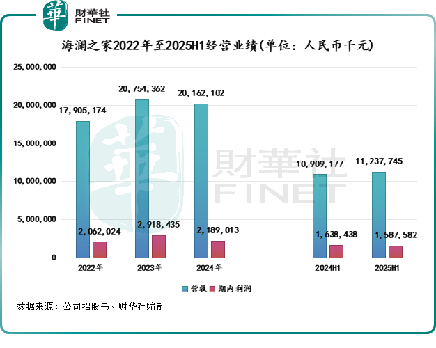 財報揭開了這份頹勢:2024年,海瀾之家在消費回歸理性的大潮中已顯疲態;進入2025年仍無起色,上半年營收112.38億元,同比僅微增3%。淨利潤則接連下滑,造血能力明顯縮水。