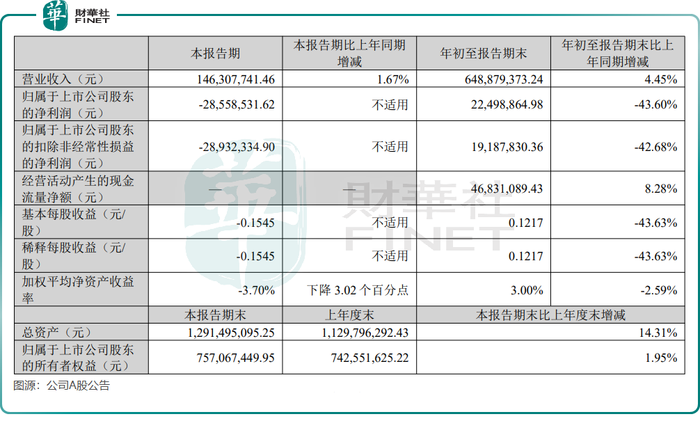 公司A股公告顯示,今年前三季度營收同比微增4.45%,淨利潤同比驟降43.6%。其中第三季度營收同比增長1.67%,並由盈轉虧,虧損接近2900萬元,昔日高增長光環漸褪。
