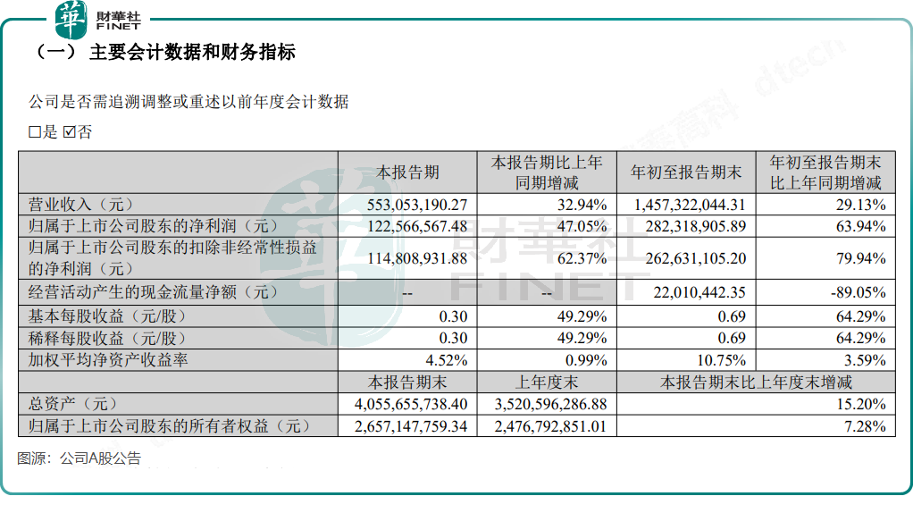 單看第三季度,公司營收和淨利潤增速分别達到32.94%和47.05%,增長勢頭更為強勁。