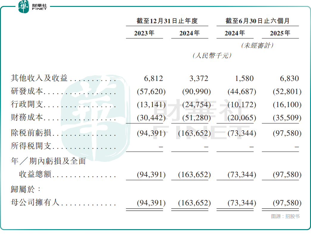 另外,2023年、2024年及2025年上半年,君賽生物的研發開支分别為5762.0萬、9099.0萬元、5280.1萬元;財務成本分别為3044.2萬元、5128.0萬元、3550.9萬元。