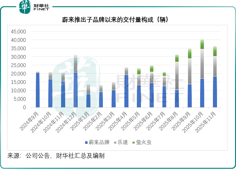 見下表,自去年9月推出樂道、今年4月推出螢火蟲繫列後,樂道與螢火蟲成為了撐起蔚來交付量增長的重要力量。