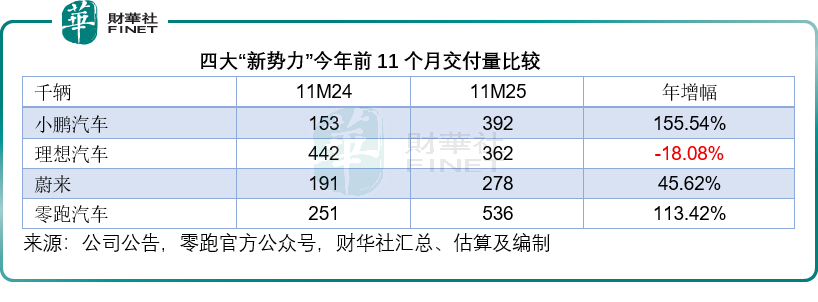 交付量分野:理想掉隊,小鵬零跑狂奔