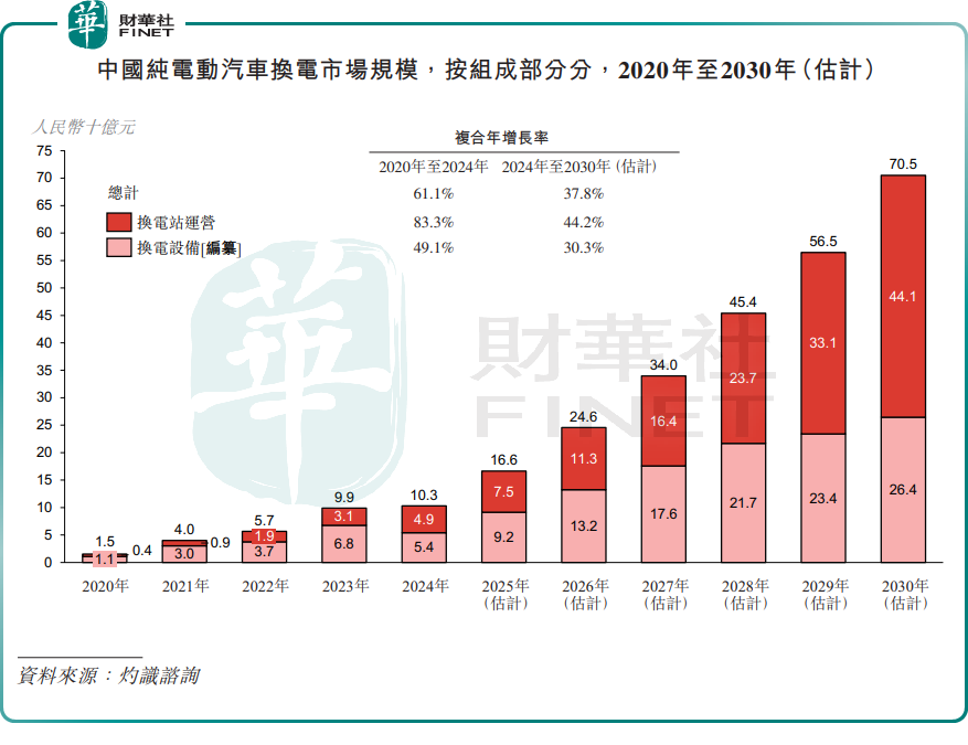 隨著純電汽車銷量爆發,補能焦慮成為行業痛點,換電模式被視為關鍵解決方案之一。數據顯示,中國換電行業市場規模已從2020年的15億元增長至2024年的103億元,預計到2030年將達到705億元,2024年至2030年復合增長率高達37.8%。
